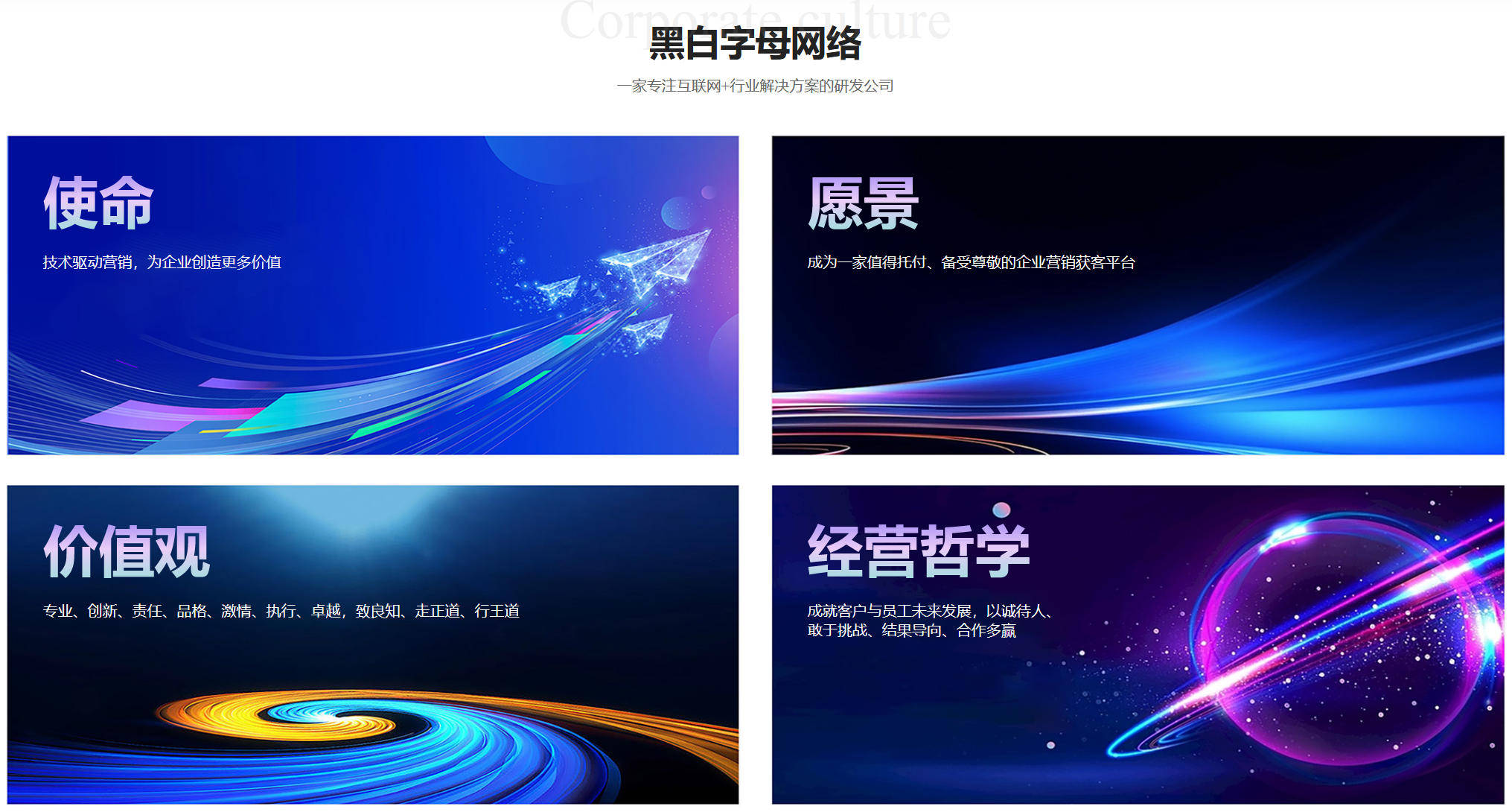 高端定制(如黑白字母网络):采用专属技术架构,支持 AI 内容生成、动态数据交互及深度业务场景融合,可随企业发展迭代升级,适合需打造差异化品牌形象或复杂功能的企业;